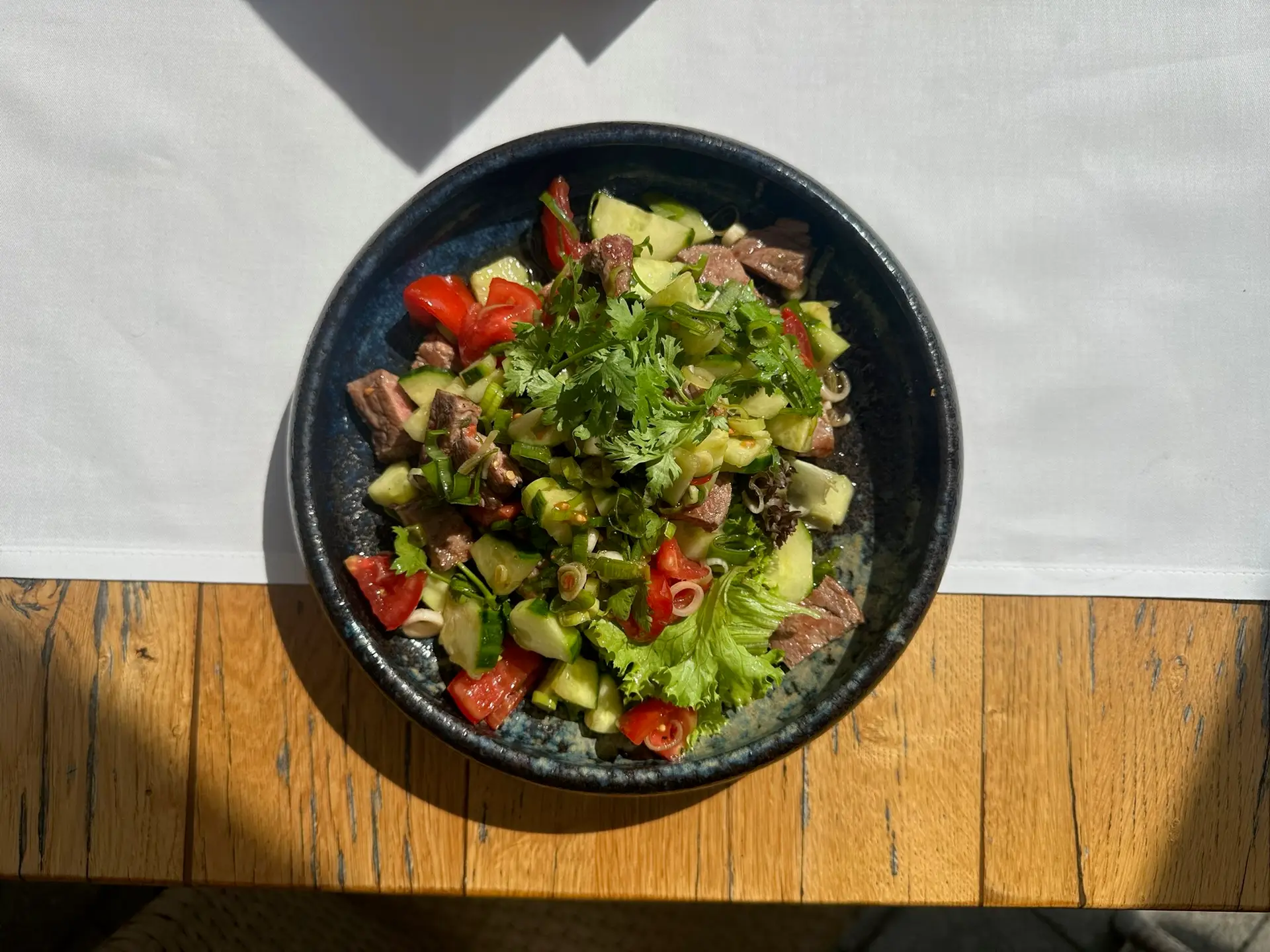 wahlweise mit Hühnchen. Rind, Zander, Lachs, Garnelen, Tofu, Falaffel